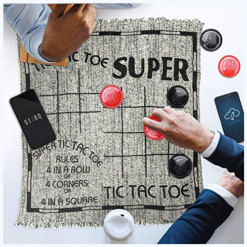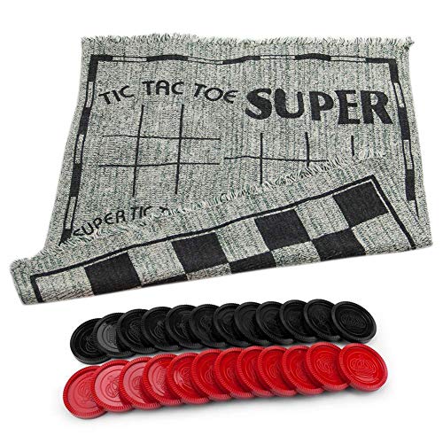 ★ Reversible Rug: The soft, woven rug measures 26″ x 26″ and features a checker board on one side, tic tac toe on the other. Including: 24 giant checkers about 3” wide, 12 pieces red and 12 pieces black.The large size makes them safe for all ages, children and adults!