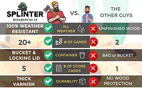 ? SUSTAINABLY SOURCED NEW ZEALAND PINE – These extra large wooden dice are guaranteed to not split, crack, twist or warp. And not more bags that rip and tear with our durable bucket.