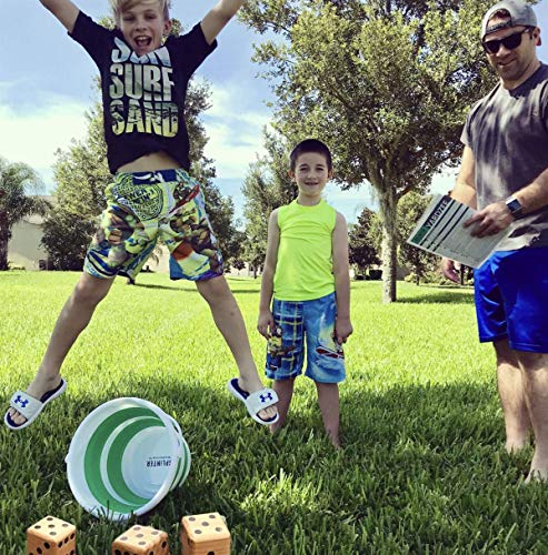 SWOOC Games – Yardzee, Farkle & 20+ Games – Giant Yard Dice Set (All Weather) with Collapsible Bucket, Lid, 5 Big…