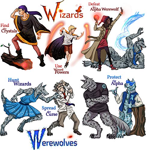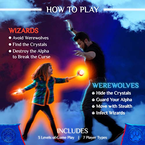 FOR AGES 8+, 4-10+ PLAYERS: Werewolves hunt Wizards and Wizards seek for glowing crystals to extend their powers – it’s a thrilling out of doors activity for boys, girls, teens, even adults
