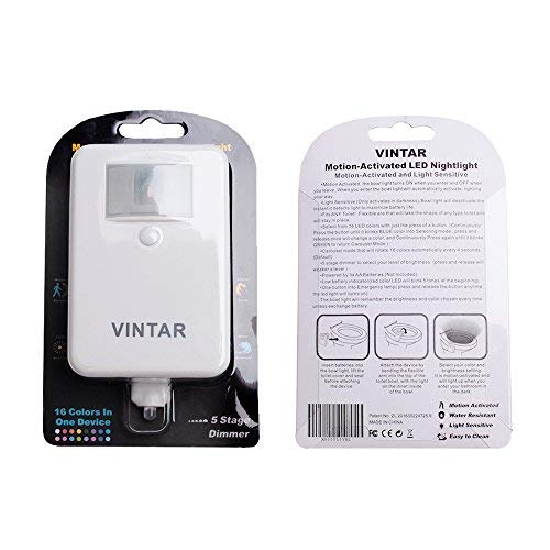 VINTAR 16-Color Motion Sensor LED Toilet Night Light,Toilet Bowl Lights,Cool Gadgets,5-Stage Dimmer, Light Detection